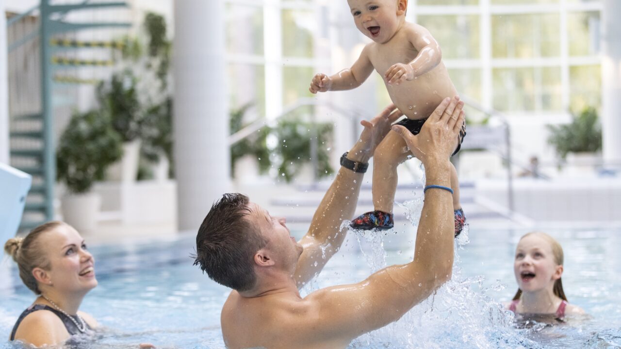 Der Poolbereich umfasst ein 25 m langes Vierbahnen-Sportbecken, ein sicheres Kinderbecken mit zwei Rutschen sowie Hydro-Massage-, Whirlpool- und Kaltwasserbecken. Neben traditionellen finnischen Saunen gibt es auch eine Kräuterdampfbadsauna. Ganzjährig können Sie im angrenzenden malerischen Fluss in natürlichem Wasser baden.