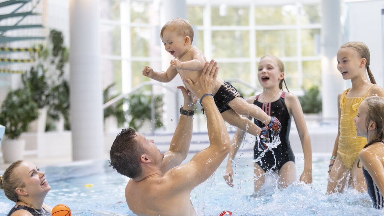 The pool area features a 25 m long four-lane fitness pool, a safe children’s pool with two slides, and hydro-massage, whirlpool and cold-water pools. In addition to traditional Finnish saunas, there is also an herbal steam sauna. Bathing in natural water is available in the nerarby scenic river all year round.