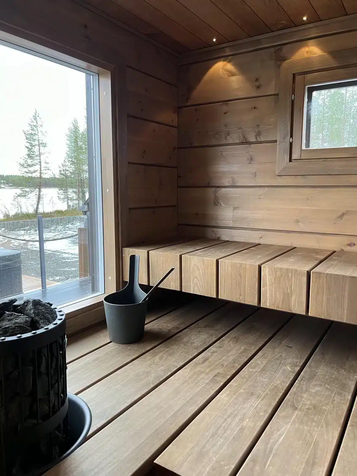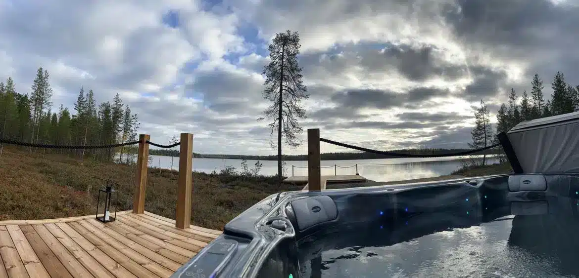 Hossan kansallispuistossa Hossanjärven rannalla sijaitseva puolitoistakerroksinen hirsihuvila 10 hengelle.