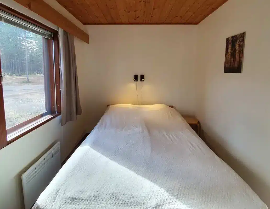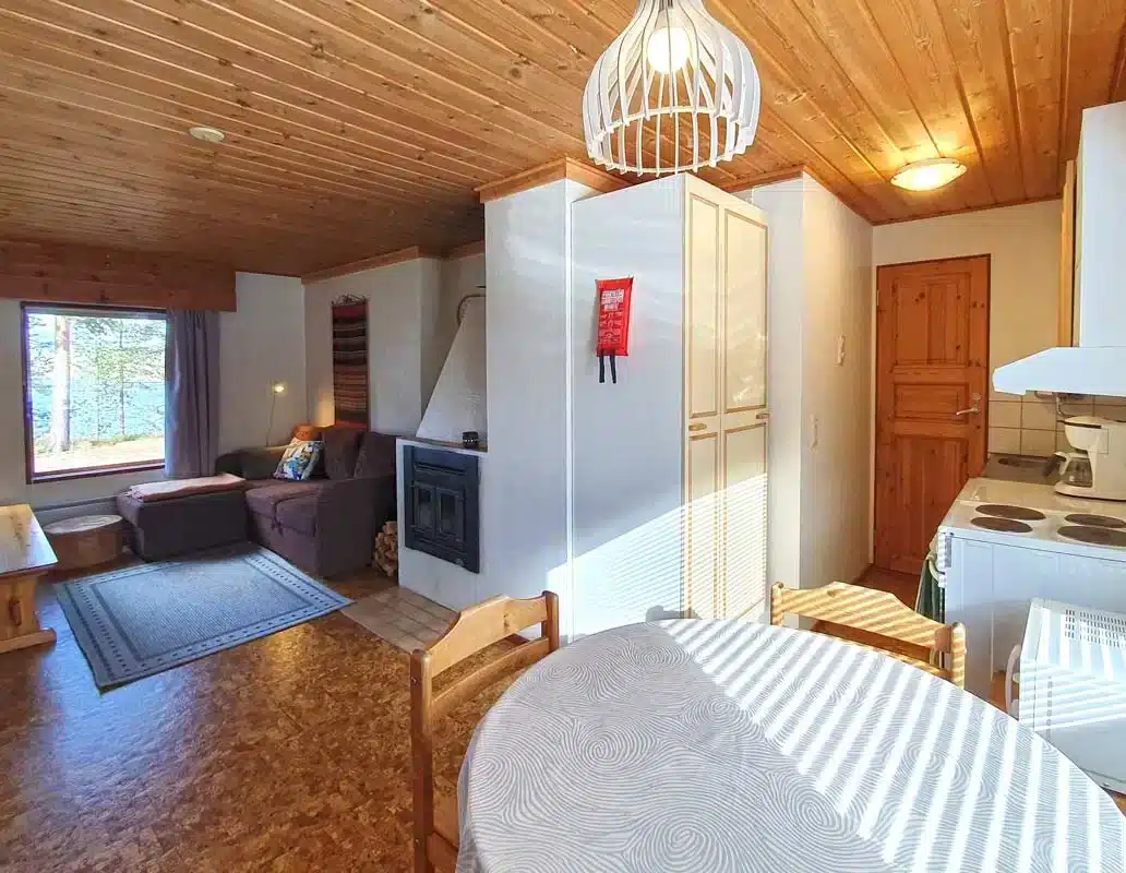 Viihtyisä talviasuttava mökki, 40m2, josta on isot ikkunat järvelle. Keittiöstä löytyy jääkaappi, liesi, mikroaaltouuni, kahvinkeitin, astiasto ja ruonlaittotarvikkeet. Mökissä on myös TV, WC, suihku ja sauna, sekä takka. Ihanteellinen perhemökki joka soveltuu myös kaveriporukalle. Parisängyllinen makuuhuone + kerrossänky oleskelutilassa. Levitettävän vuodesohvan avulla mökkiin mahtuu jopa 6 henkilöä. Mökki on ympärivuotisessa käytössä.