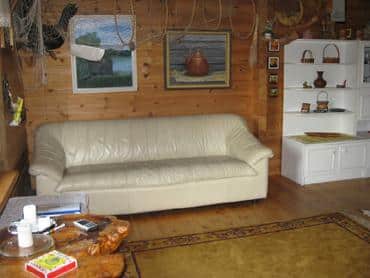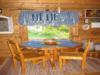 Alakerrassa tupa, jossa vuodesohva 2 henkilölle sekä keittiö. Parvella parisänky ja 1 vuode, parvi viistokattoinen, korkeimmillaan 160 cm, parvelle jyrkät portaat. Valaistus aurinkosähköllä.