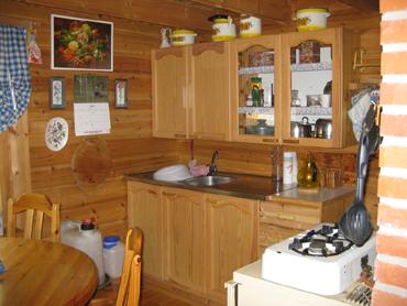 Huoltaja toimittaa juomaveden porakaivosta, pesuvesi järvestä. Uunilämmitys. Kaasuliesi ja –jääkaappi, astiat ja keittovälineet. Pihalla grillauspaikka, liiteri ja rantasauna. Rannassa laituri.