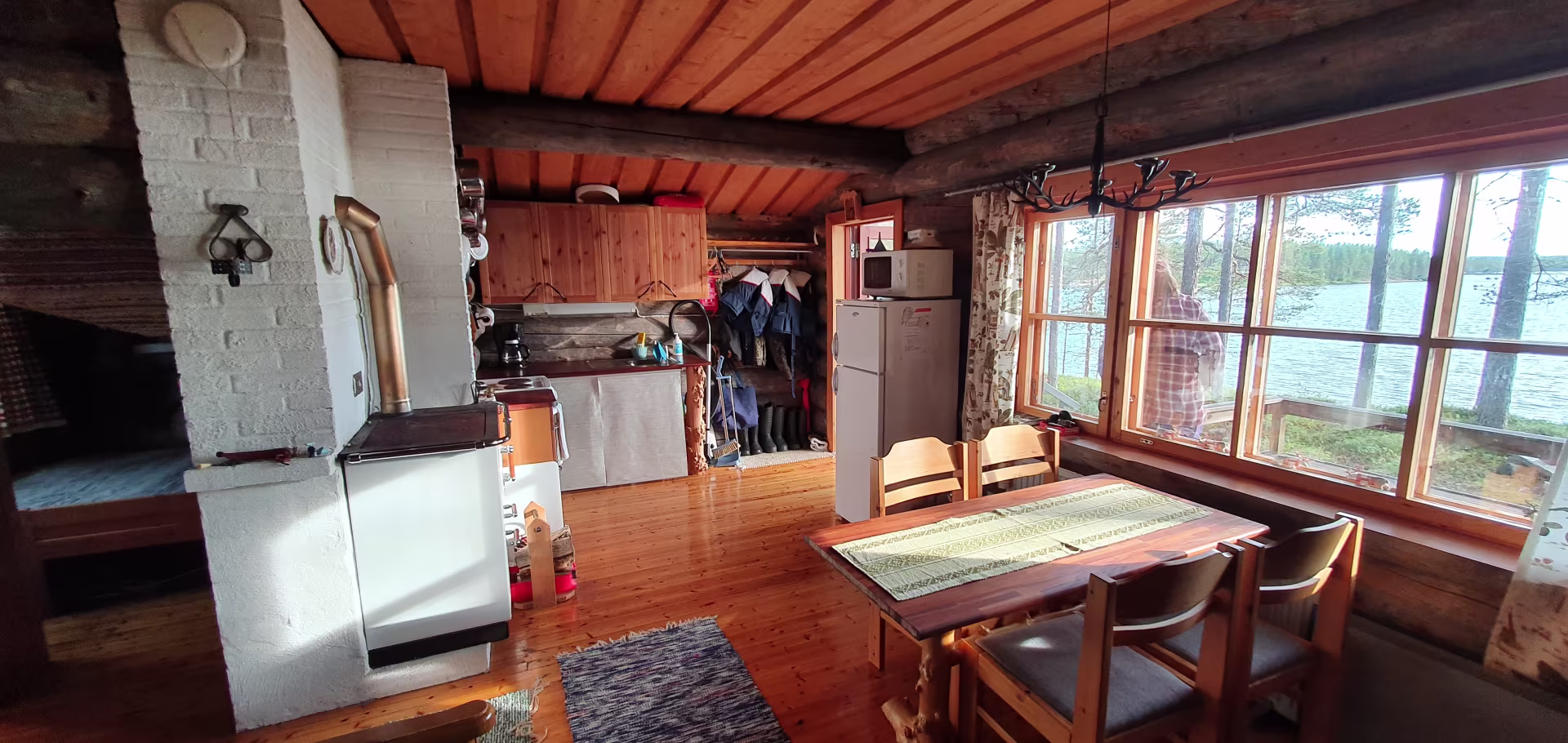 Mökki sijaitsee saaressa, jonne on noin 200 metrin soutumatka parkkipaikalta.