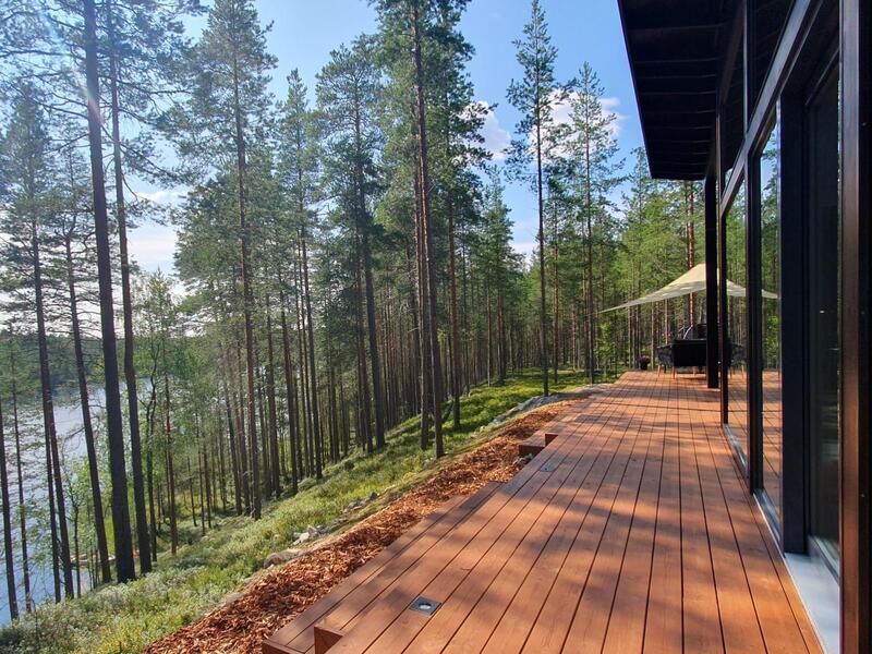 Moderni ja skandinaavisesti sisustettu hirsimökki rauhallisesti virtaavan Vuokinjoen rannalla, harjun päällä. Ympäristö on hiljainen ja sopivan syrjässä, mutta silti lähellä palveluja. Kalastusmahdollisuudet ovat erinomaiset ja mökille pääsee tietä pitkin.