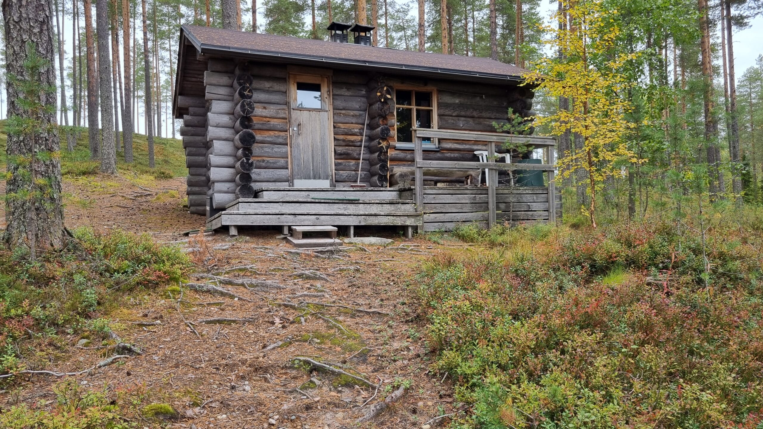 Paasonkosken eräkämppä kuvattuna etualalta.